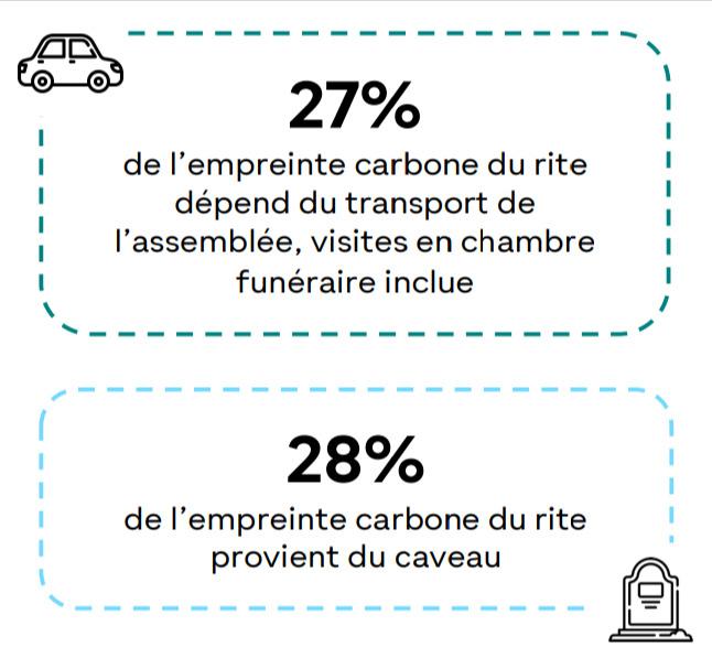 Il est à noter que le transport représente 27% de l'empreinte carbone pour le déplacement de l'assemblée lors des cérémonies et les visites en chambre funéraire.