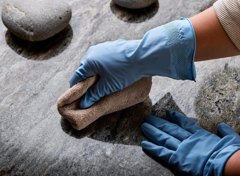 - Pour les pierres de finition rugueuse, utilisez une brosse à poils souples et du savon noir pour éliminer la saleté dans les parties creuses.