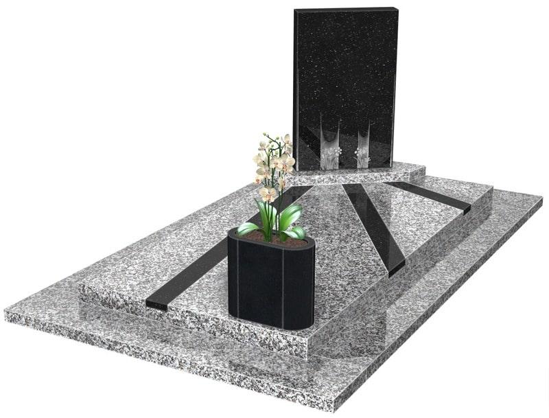 Ce monument bicolore se distingue par son élégance. Il est orné d'un vase noir gravé d’une rose blanche en poudre de Swarovski et lithogravure blanche. Le vase est en harmonie avec le motif floral délicatement sculpté en blanc sur la stèle.