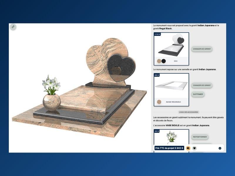 Une fois le modèle sélectionné, la famille personnalise la pierre tombale dans les moindres détails.