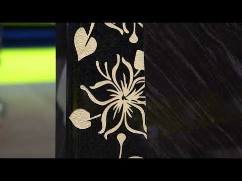 Ce modèle est présenté avec les granits Virgin Blue et Regal Black. Il est sublimé par l'accessoire Vase Soliflore Galbé.
